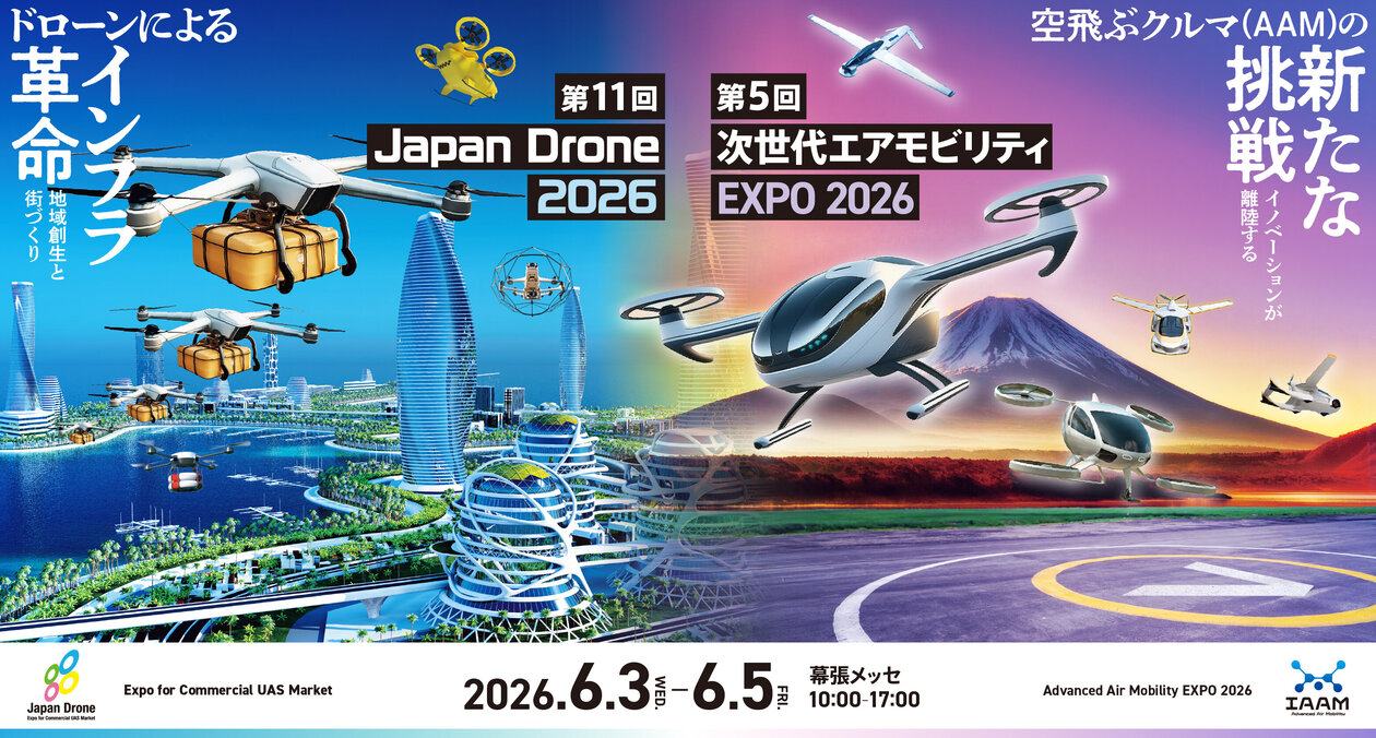 2026年6月3日(水)~6月5日(金)、一般社団法人日本UAS産業振興協議会(JUIDA)と株式会社コングレは、幕張メッセにて、ドローンの専門展示会「第11回 Japan Drone 2026」および「第5回次世代エアモビリティEXPO 2026」を開催します。