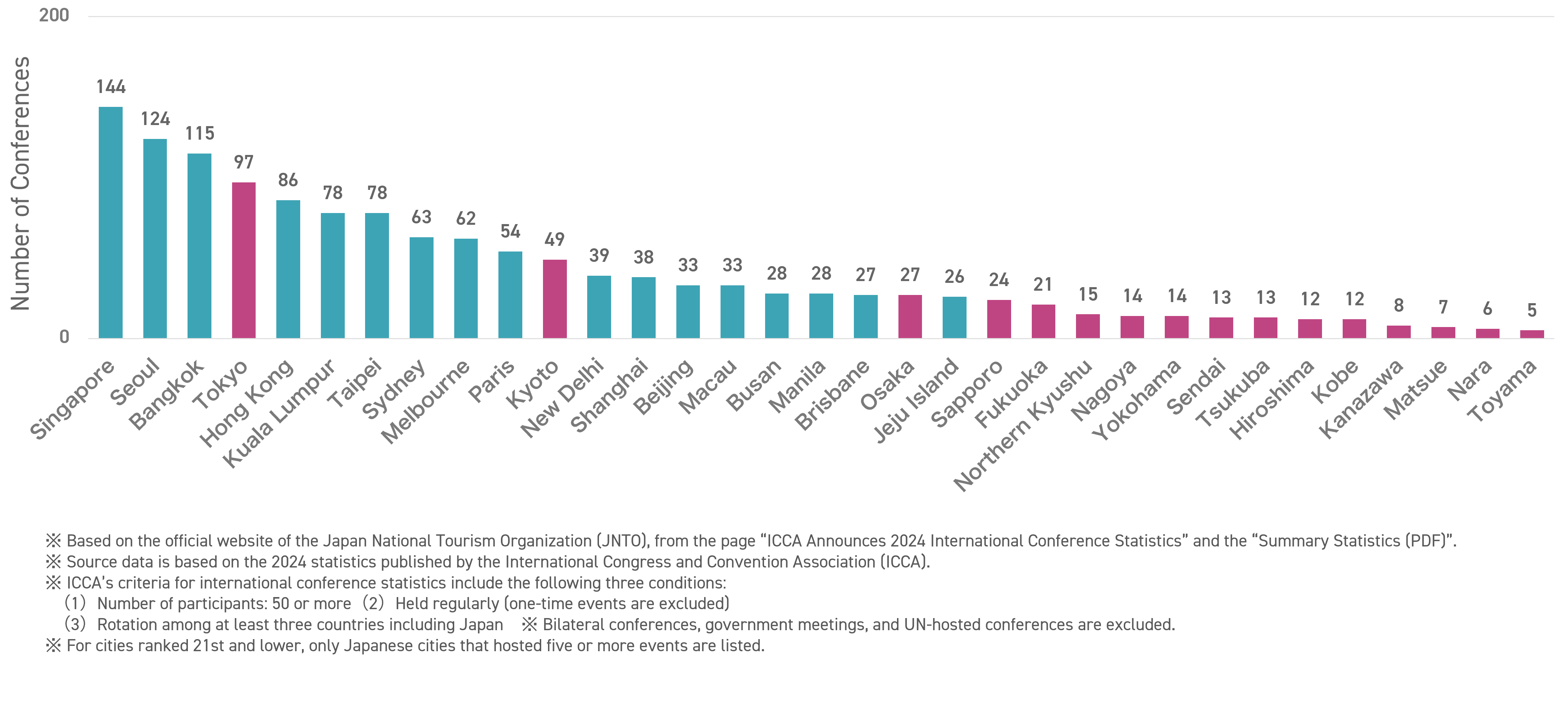 - Japan accounted for 33.4% of all conferences held in major Asian countries and regions, ranked 1st (same as the previous year).