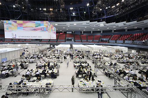 During the G7 Hiroshima Summit held from 19 to 21 May 2023, Congrès Inc., in a consortium with fellow Japan Convention Services (JCS), was appointed to execute the set-up and operations of the International Media Center (IMC), which served as the hub for domestic and international media organizations to disseminate information worldwide on this important occasion.