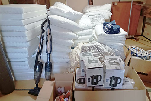 As for our IMC operations' employees, in lieu of hotel accommodations (not available due to the massive number of people, tens of thousands per day, supporting the G7 Hiroshima Summit operations), we rented vacant apartments scheduled for demolition after the Summit, and purchased new bedding and other equipment: some employees stayed for over 1 month. Used items were not discarded, but donated to the Hiroshima Association of Certified Social Workers, to contribute to the community.