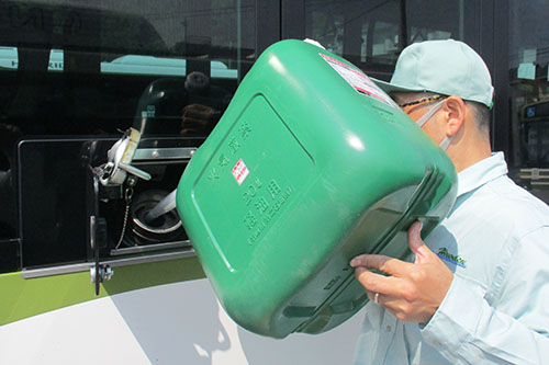 Transportation logistics was also a key area of responsibility for Congrès, to make certain that media representatives visiting from various countries, many no doubt for the first time, could move smoothly around Hiroshima, while striving to ensure environmentally friendly travel. One feature was our collaboration with Euglena Co., Ltd. to utilize their next-generation biodiesel fuel "SUSTEO" in certain vehicles, such as shuttle buses only used late at night or rush hour, to encourage use of public transportation.