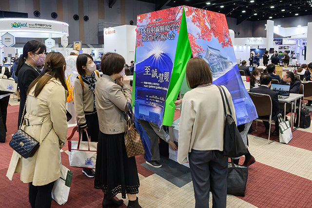 A photo spot featuring the official visual theme of the congress was set up in the exhibition area, offering attendees a fun way to capture memories of the event. The backdrop incorporated trick art elements, and many participants posed with specially designed uchiwa (traditional hand fans) created by the host institution, adding a lively and personal touch to their photos.