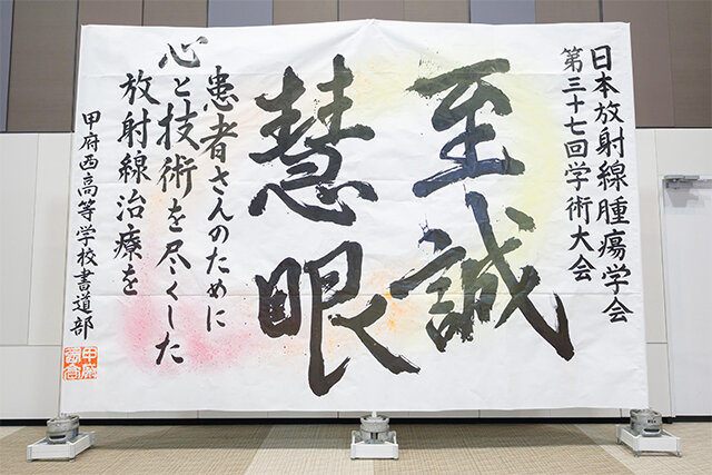 The featured pieces, bearing messages such as "Shisei-Keigan" and "Radiotherapy that Combines Heart and Skill for the Sake of the Patient," left a lasting impression on many attendees, delivering a sense of inspiration and encouragement that resonated deeply with the meeting's overall theme and spirit.