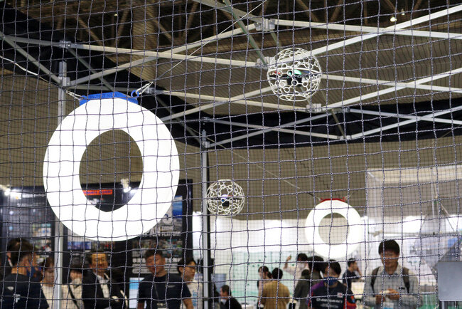 Demonstration of the omnidirectional multicopter "HAGAMOSphere." by DIC Corporation.