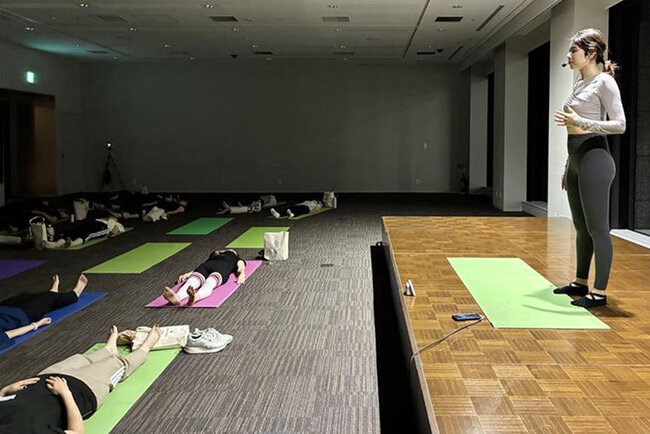 9月17日に開催された第1回では、初心者から運動好きな方まで、仕事帰りにデトックス&リフレッシュのひとときを楽しんでいただきました。レッスンでは、家や職場で手軽にできる呼吸法を使ったエクササイズや、デスクワークで凝りがちな肩や腰をほぐすストレッチを実践。さらに、振り返り用レッスン動画や30分間のプライベートオンラインレッスン、継続をサポートするギフトもプレゼントしました。