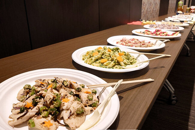 レッスン後には、おいしいヘルシーフードを味わいながら、参加者同士が楽しく交流できる時間を提供しました。
