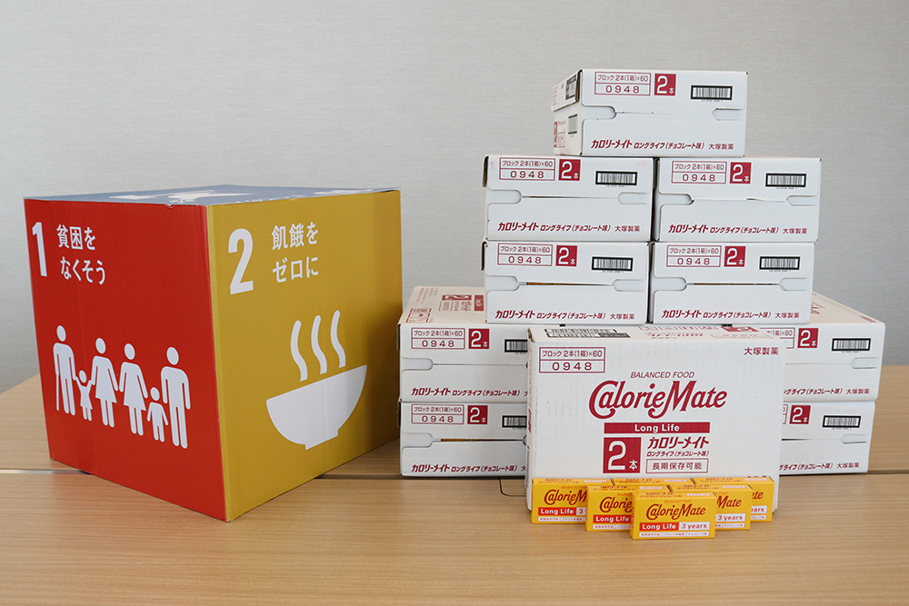 当社はBCP(事業継続計画)の一環として、震災などに備えて防災備品を備蓄しています。そのうち、東京本社で備蓄する約700個のカロリーメイト ロングライフ(チョコレート味)の消費期限が近くなったため、フードロス削減につながる方法を検討し、フードバンク活動を実施するセカンドハーベスト・ジャパンへ寄付することを決めました。