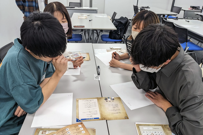 謎解きがスタートすると、緊張していた様子はすぐに一変し、各チームで会話が始まりました。チーム内での"情報共有"が謎解きの最大のヒントになることに、早くも気が付いたようです。また、謎ごとに出題される問題のジャンルが異なるため、各自の得意分野を活かし、"みんなで解く"こともポイントとなりました。