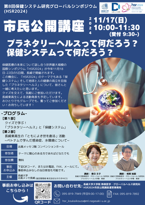 会期前の11月17日、長崎大学と出島メッセ長崎(指定管理者:株式会社ながさきMICE)が「プラネタリーヘルスって何だろう?保健システムってなんだろう?」をテーマに市民公開講座を開催し、多くの市民の方々にご参加いただきました。