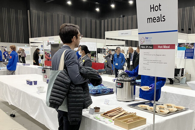 世界各地から集まる参加者の宗教や食習慣に配慮し、計33種類もの個別メニュー(ハラル、ヴィーガン、グルテンフリー等)を用意しました。 これらは、長崎国際観光コンベンション協会(DMO NAGASAKI)を通じて地元の6事業者と共同開発したものです。さらに、出島メッセ長崎に隣接するヒルトン長崎と連携し、「長崎皿うどん」などの温かい郷土料理(ホットミール)も提供。地方都市における多様な食への対応と、地域経済への貢献を両立させました。