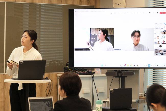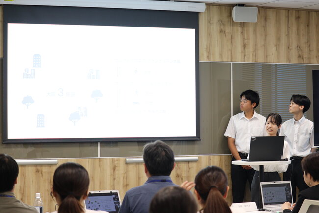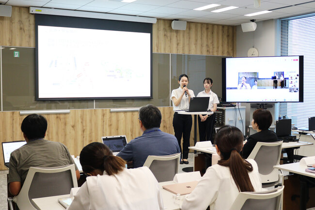 また、プレゼンの発声や振る舞い、パワーポイントの作り方、デザイン・レイアウトなど、これからの就職活動に活かせる汎用性の高い技術についても、本社にて人事や広報の担当者からレクチャーを行っています。