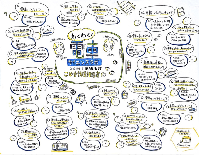 明星大学の「こども鉄道技術相談室」では、鉄道に関する日常の疑問について先生が直接回答します。「電車はどうしてはやいの?」「どうして新幹線の先はとがっているの?」など多くの質問が寄せられ、先生と参加者との間で活発なやり取りが行われました。