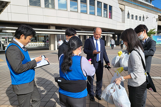 ゴミ拾いがスタートすると、各チームはマップを片手に、真剣な表情で作戦を立て始めました。中には、チーム内で手分けして複数のエリアを同時に行う頭脳派チームも。クイズに挑戦することで、自然と会話が生まれ、楽しみながら取り組んでいただけました。また、ゴミの多いエリアへ誘導するために用意したボーナスクイズで、これまであまり清掃できなかった場所を綺麗にすることができました。
