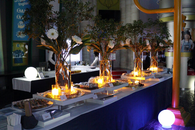 あわせて、メインステージ周辺ではウェルカムドリンクやフィンガーフードを提供し、参加者が自然に集い交流できるレセプション空間としています。