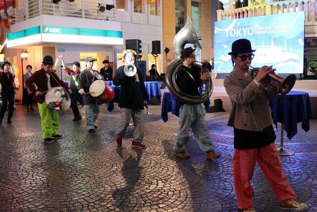 また、大道芸パフォーマンスやスペシャル楽団による演奏を街角で随時展開し、街並み空間全体に賑わいと高揚感をもたらしました。